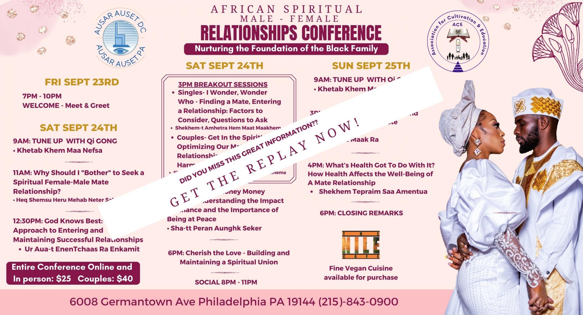 This workshop advocates for entering, nurturing and cultivating a spiritual mate relationship and addresses the factors that influence our thoughts, beliefs, expectations, behaviors, and measures concerning such, while suggesting spiritual means by which to successfully navigate and manage the relationship.